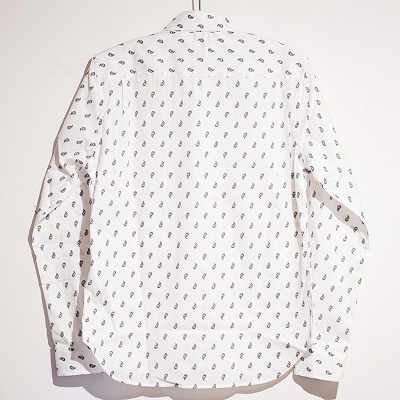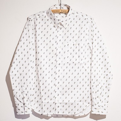 私共の定番のボタンダウンシャツを、今季は小紋のペイズリー柄で作りました。