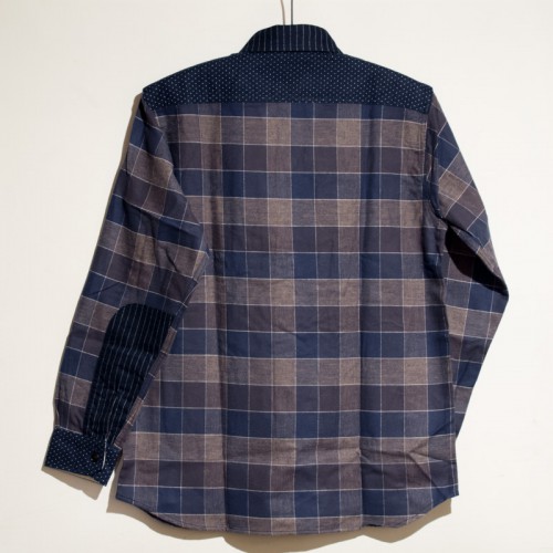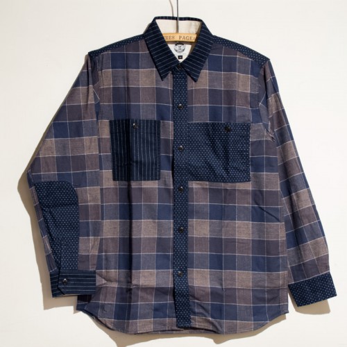 スタンダードなスタイル且つタフな素材に、ヘダースのポップなプリントを入れることで、どこか60年代の毎週末レース場に居るおじさんが着ている様な雰囲気のシャツに仕上がりました。