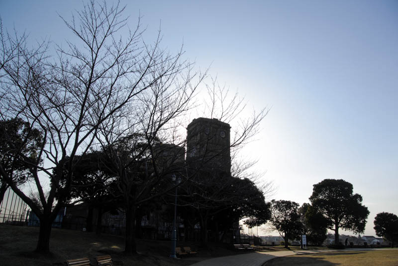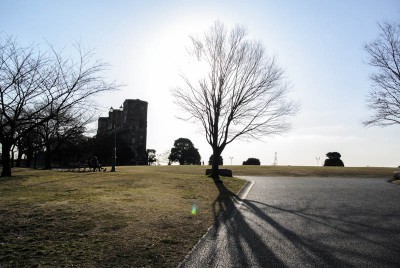 この公園には横濱競馬場(根岸競馬場)一等観覧席跡があります。戦後は連合軍に接収され、返還された現在でも米軍施設が隣接している為、正面から見ることは出来ませんでしたが、検索してみると、正面や内部を撮影した画像が出てまいりました。廃墟めぐりでは定番の様です。
