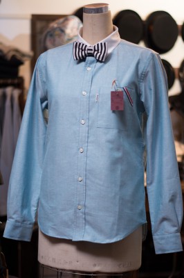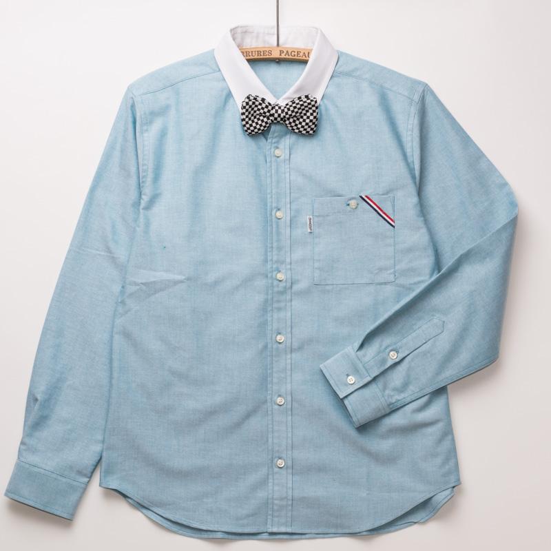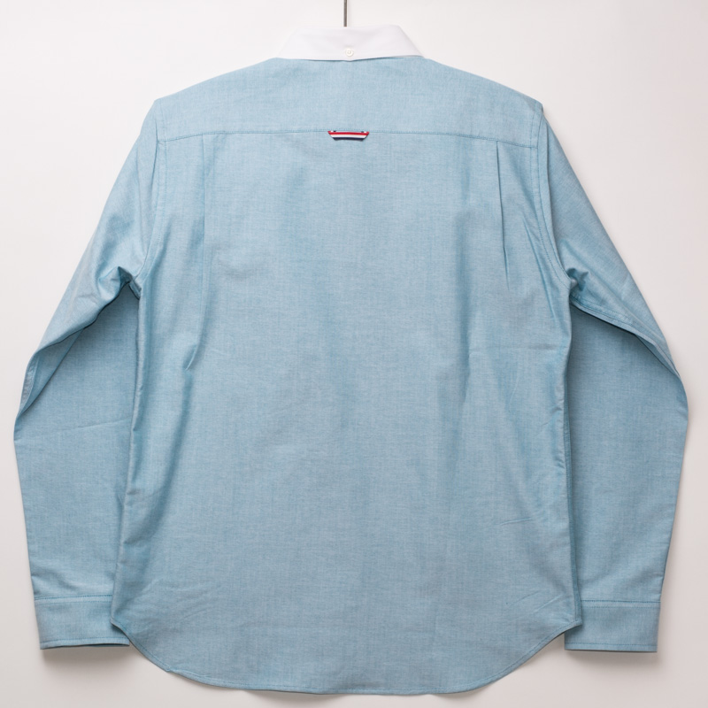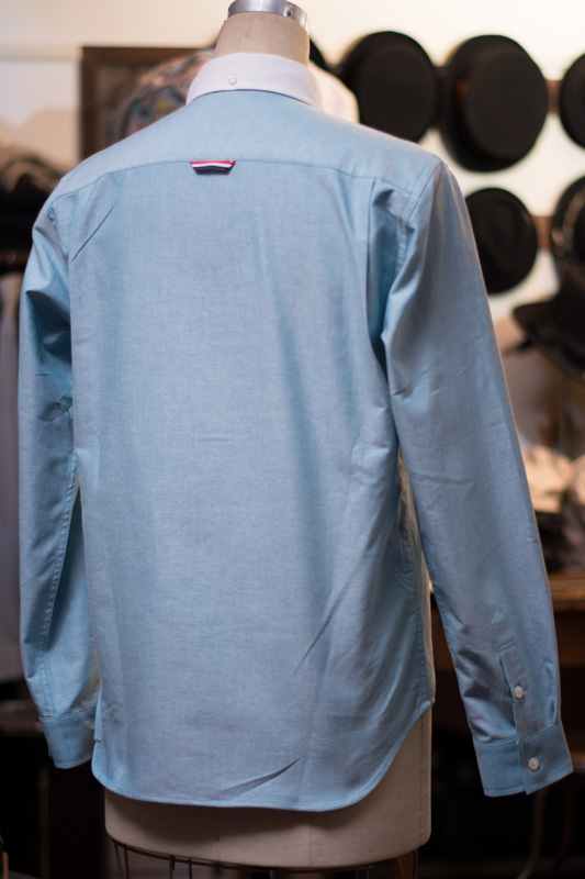 定番のボタンダウンに、本来は昼の礼装用として生まれたクレリックシャツのディテールを織り交ぜました。