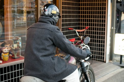 裾をやや絞ったシルエットは、襟を立て、さらに前を閉めれば、ティーンエイジャーの反抗心もアピール出来ます。