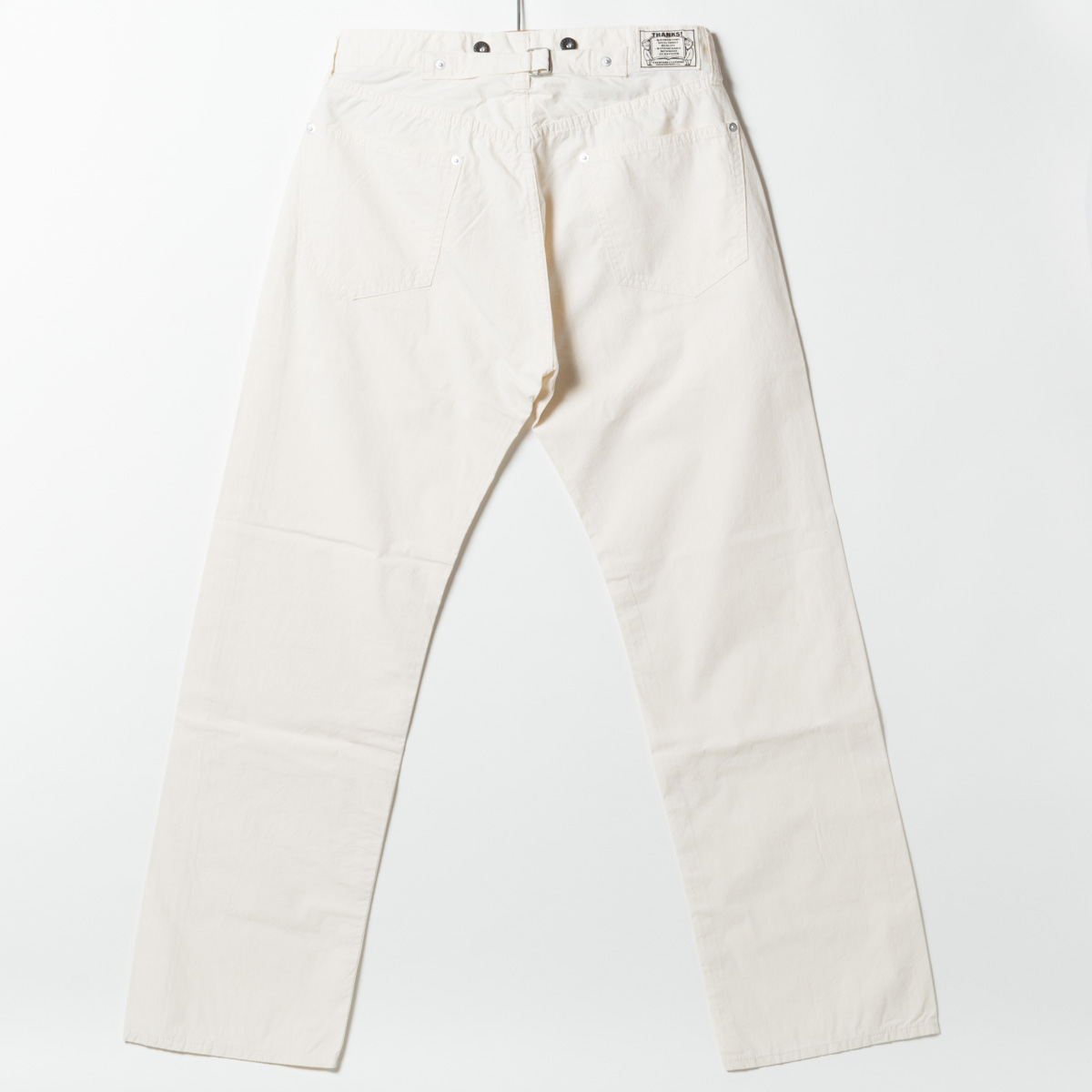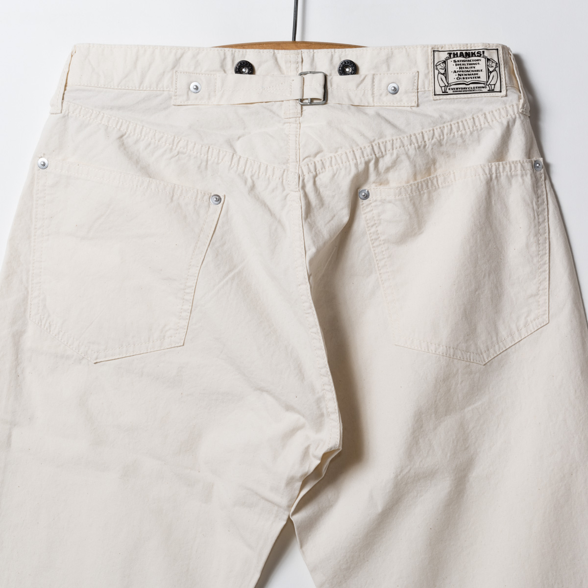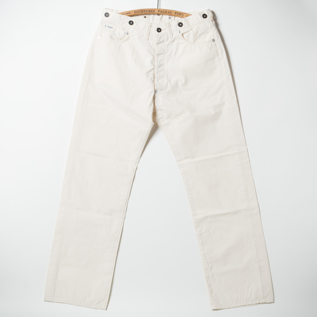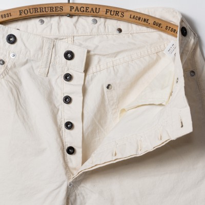 薄手ながら超高密度コットンを使用しているのでタフさは折り紙つき、オフホワイトが暑苦しさをシャットアウト。ライディングにも適するパンツに仕上がりました。
