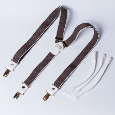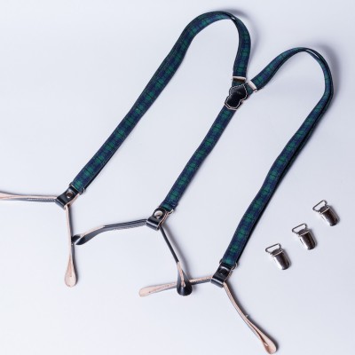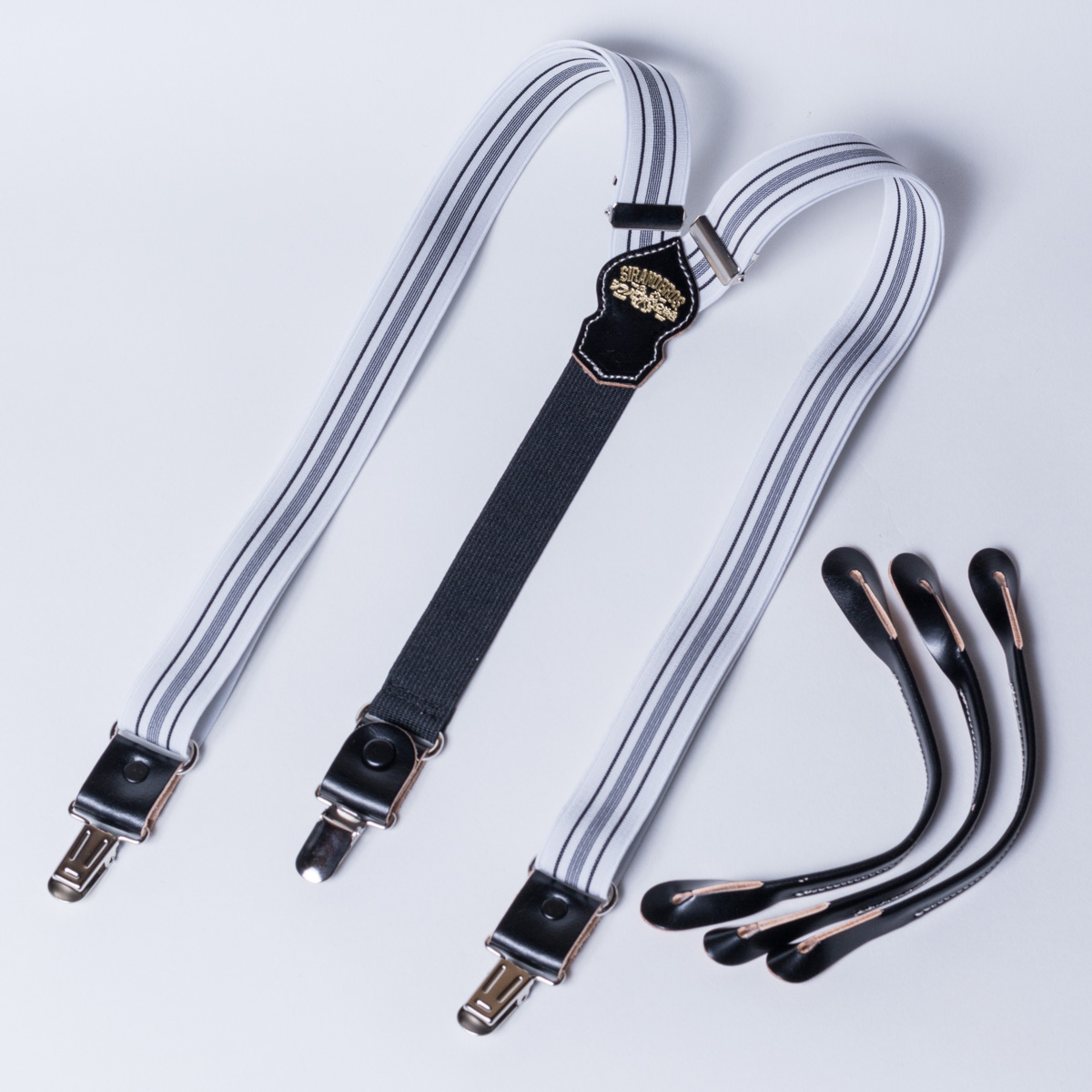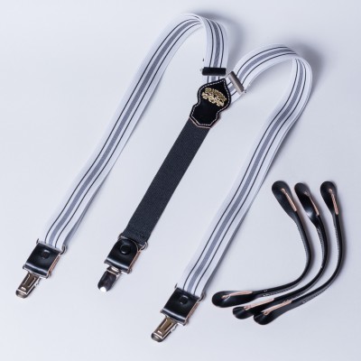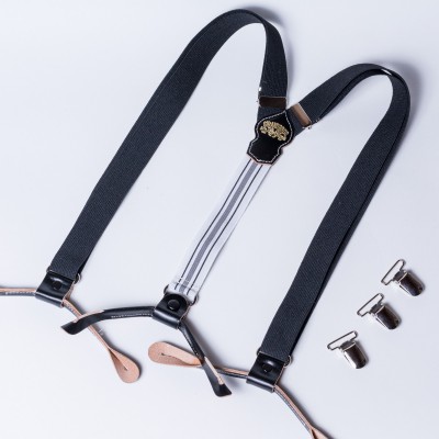 上質なレザーを使用することでワークとしての機能性を持ち、細めのエラスティックがよりエレガンスにドレスの雰囲気を醸し出す、相反する利点を兼ね備えたサスペンダーです。