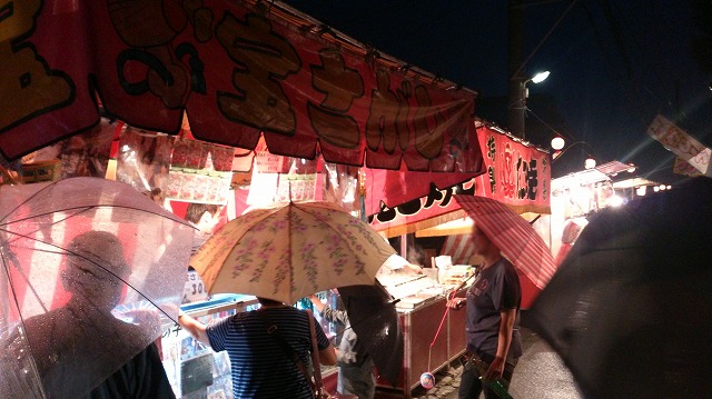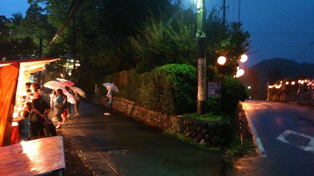 神社、鎮守の森、多過ぎない人、近くに流れる小川、山道に続く提灯、昔ながらの怪しい(笑)露店。ロケーションが完璧です。