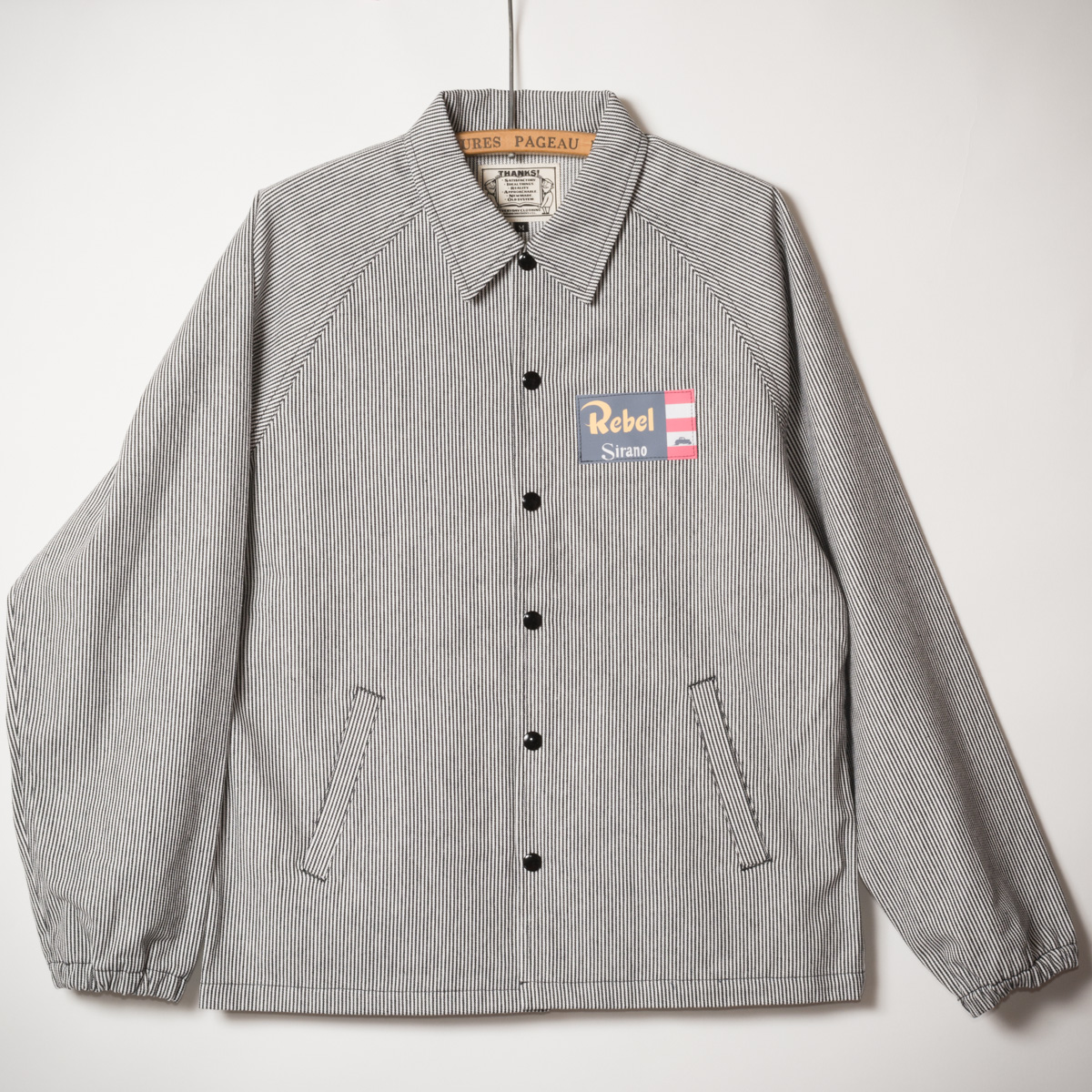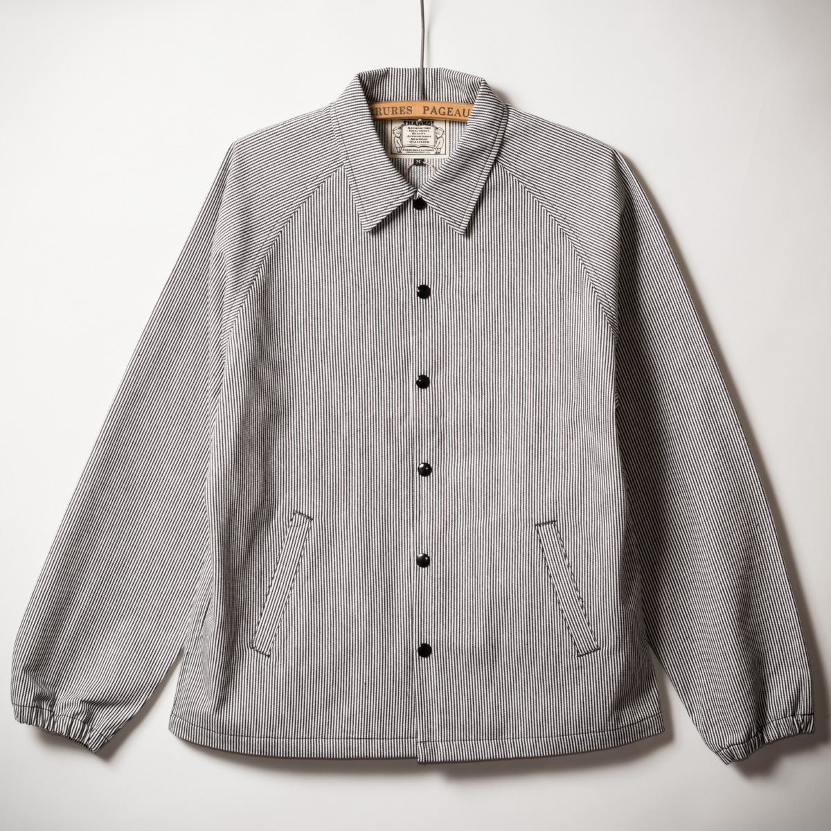 数年ぶりのリバイバルです。適応性の高いラグランスリーブの、アメリカンなコーチジャケット。久しく見ない普通のヒッコリーストライプが逆に新鮮です。