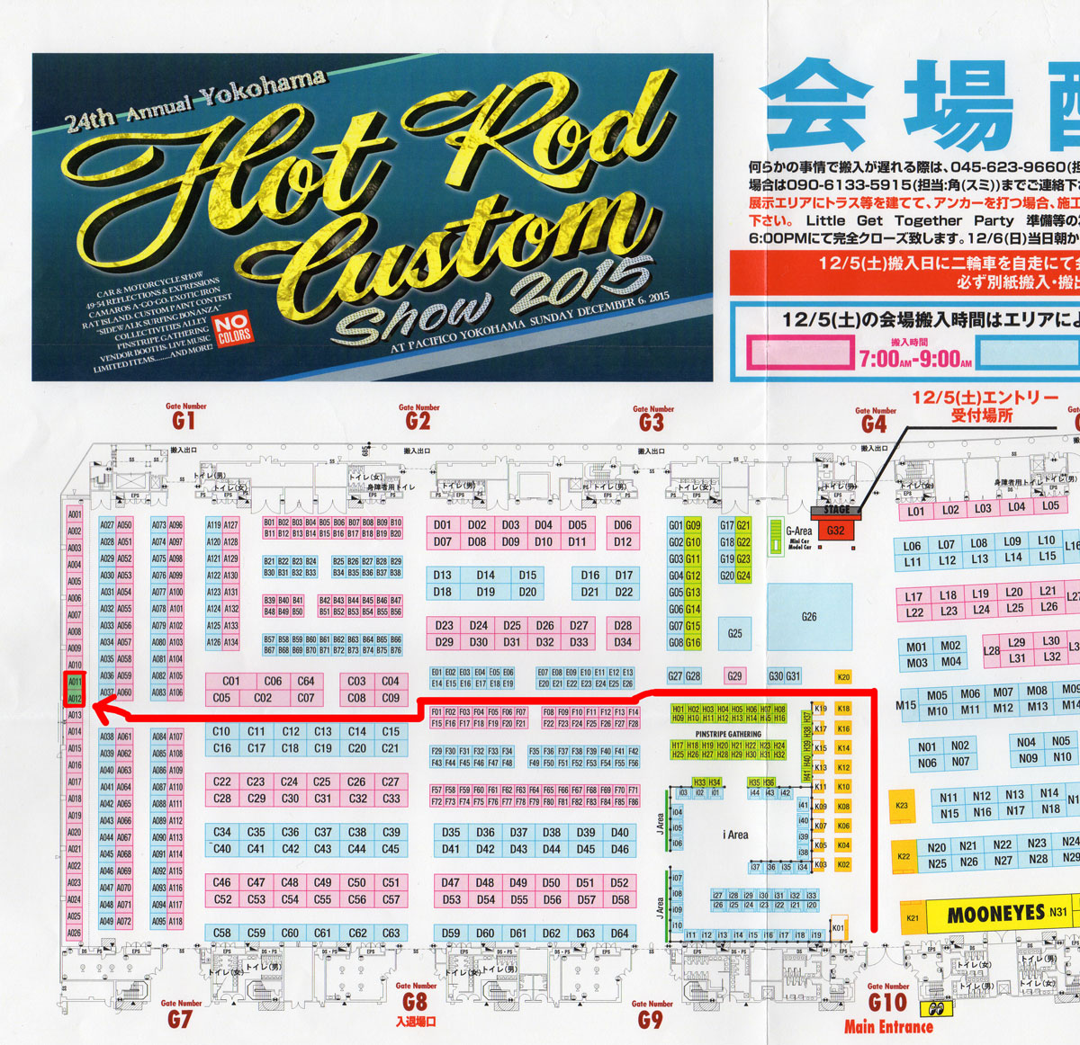 今年は、ムーンアイズ 横浜ホットロッドカスタムショー(12/6,日曜)に出店させて頂きます。今回は新作中心ではなく、アウトレット品(20%~80%off)を中心に持っていく予定です。あまり無い機会ですので、ご来場の際はお立ち寄り頂ければ幸いです。また、左隣は横浜のSHOTGUN SHACK様、反対隣はVICTOR HOT ROD SHOP様です。