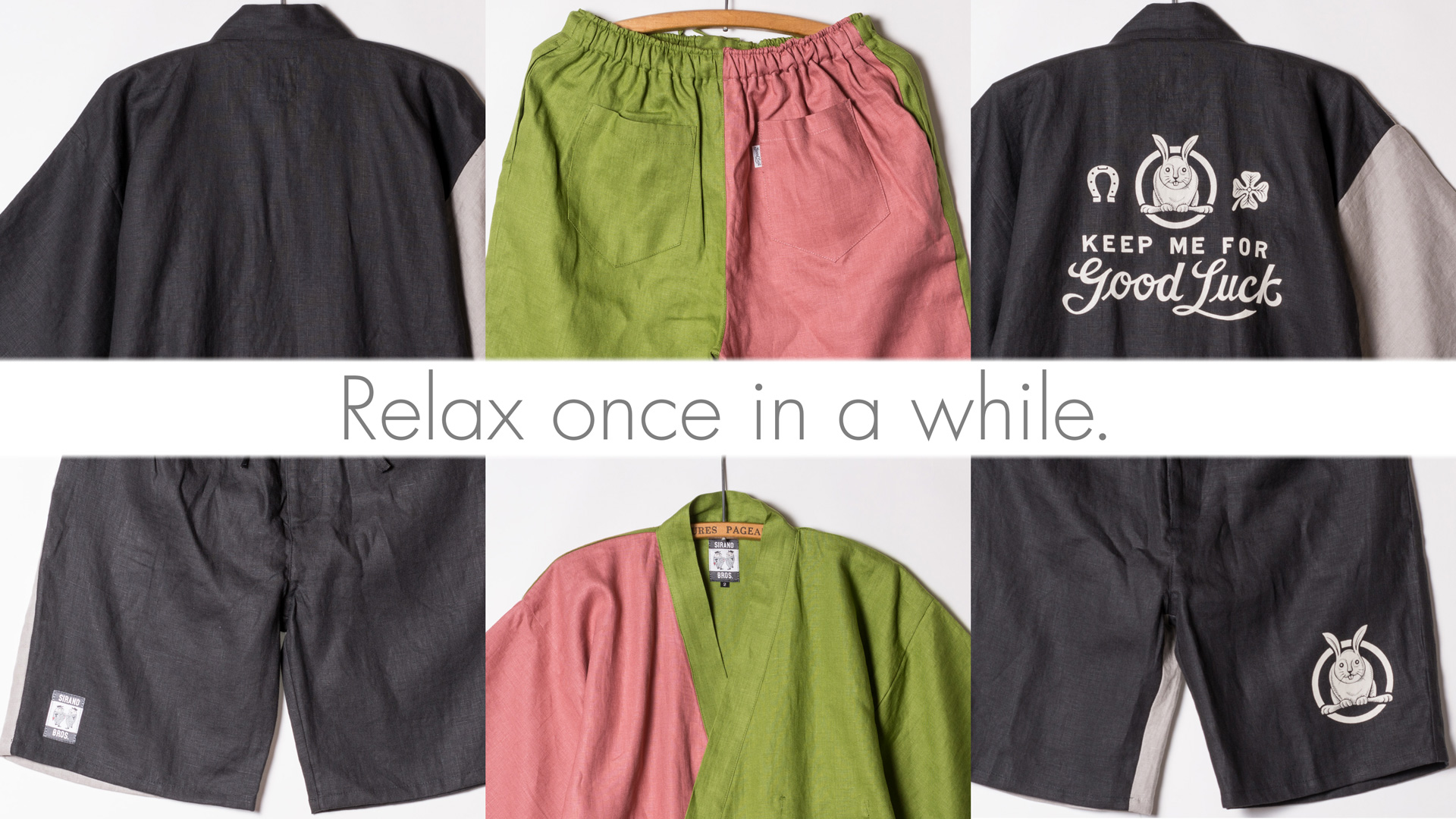 日本の伝統的なルームウェアを、外出着としても対応できるように仕上げました。吸水性・発散性に優れた天然の機能素材である麻100%の生地を使用しているので、リラックスウェアとしての快適性も折り紙つきです。