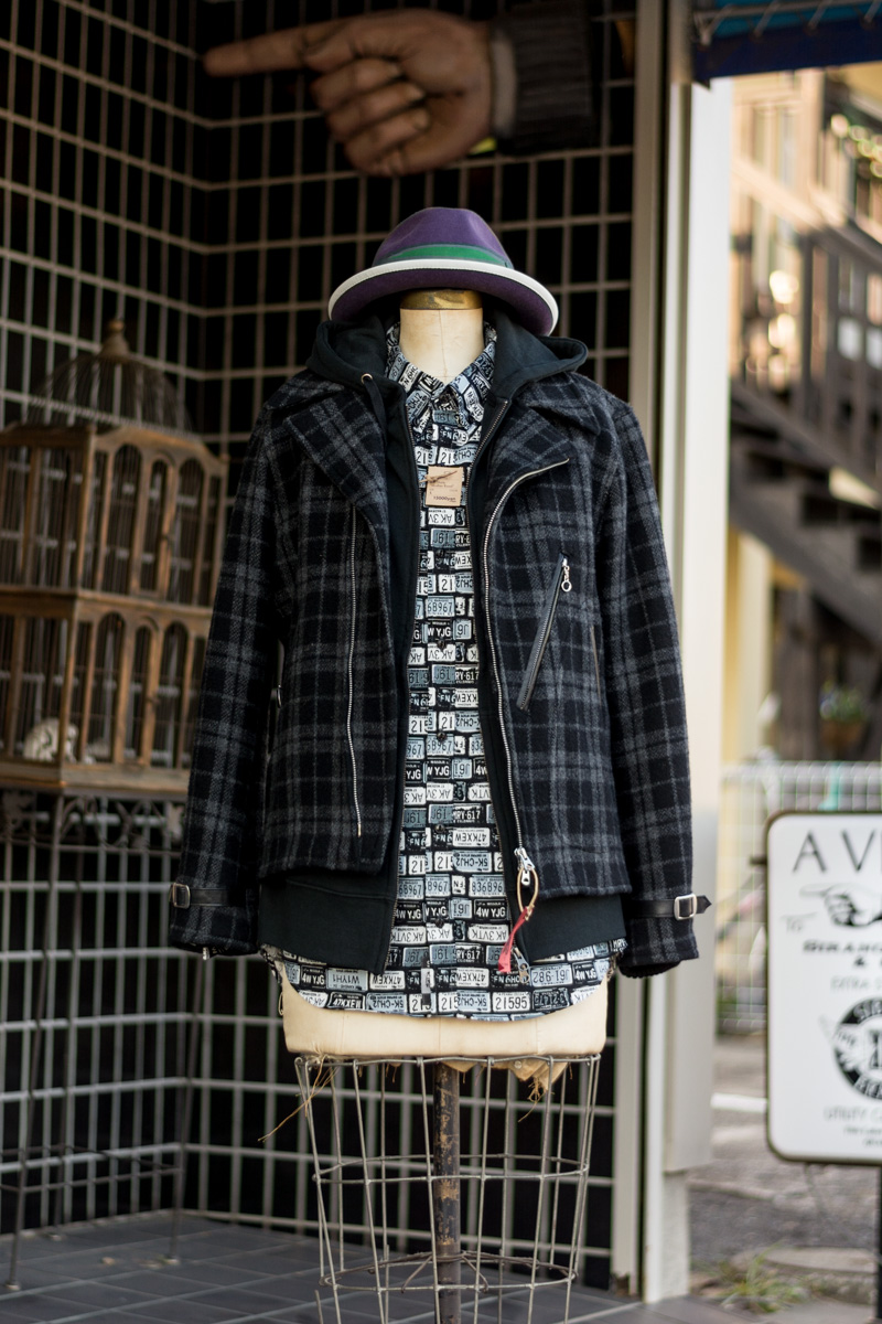 胸元に控え目に張り付けられたファジーダイスの刺繍ワッペンが、柄と相まって古き良きアメリカを彷彿とさせます。