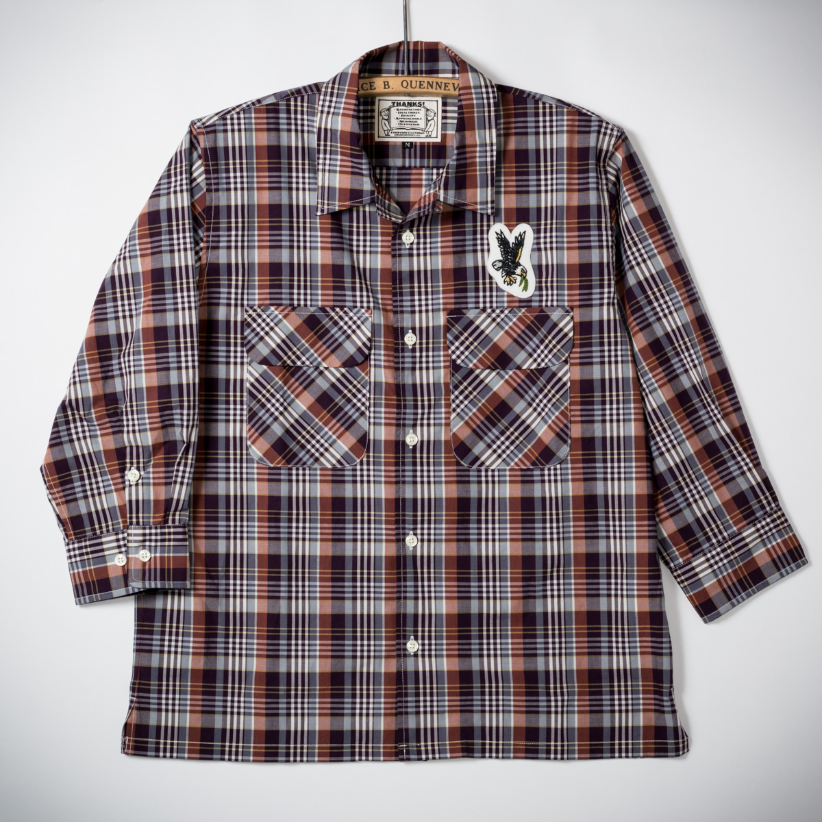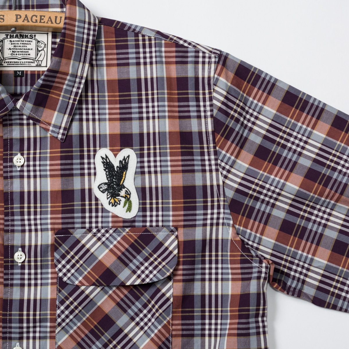 良い意味で垢抜けないマドラスチェック、オープンカラー、控えめなワッペン。そんなバタ臭い空気を持った、団塊世代の父親たちの思い出が詰まったシャツです。